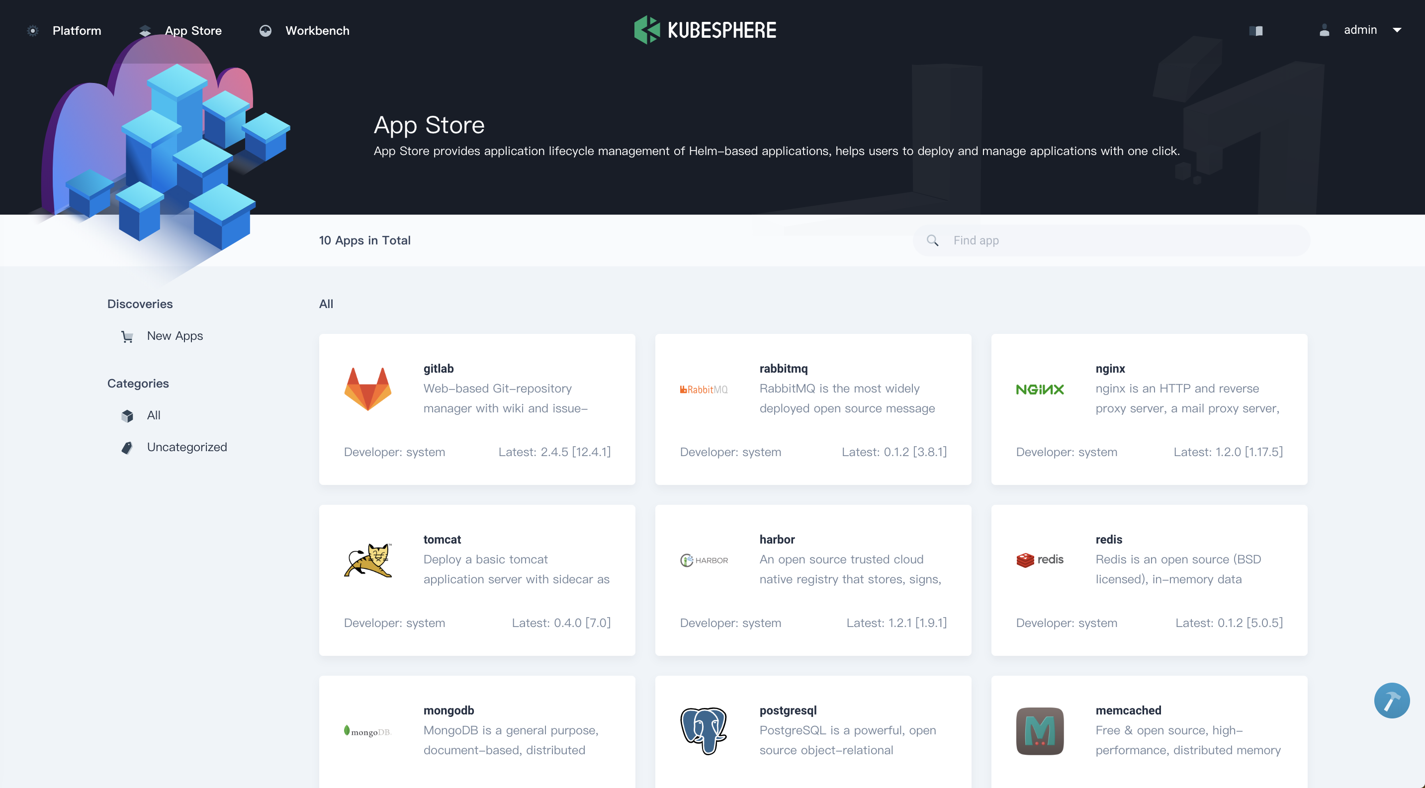 💻 App Store Provide an App Store for Helm-based applications, and offer application lifecycle management on Kubernetes platform. Learn more.